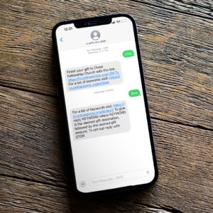 Send the word GIVE to 972.914.5539 to register for text giving, and follow the instructions to activate your text giving account. Once set-up is complete, you can text “GIVE” + any number to give that amount. For example, GIVE 50 will send a $50 donation.